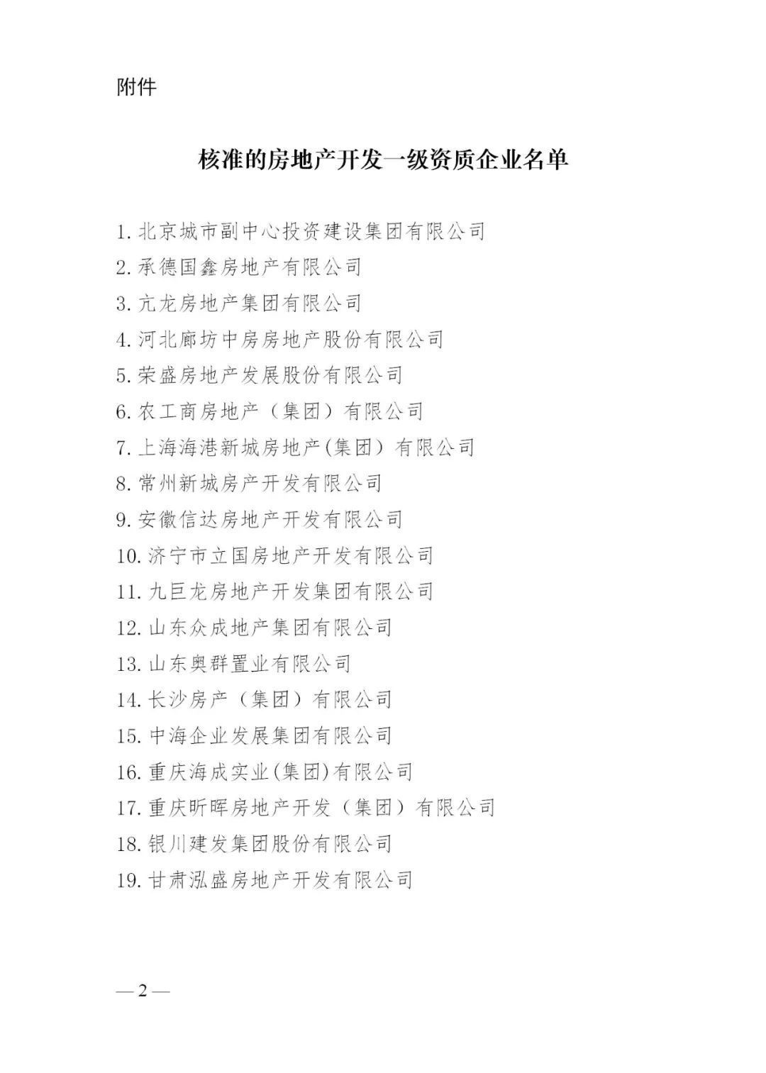 【大河财立方消息】2月6日,住房城乡建设部公告称,近期对申请晋升或延续房地产开发一级资质企业进行了审查,公布核准的19家房地产开发一级资质企业名单。